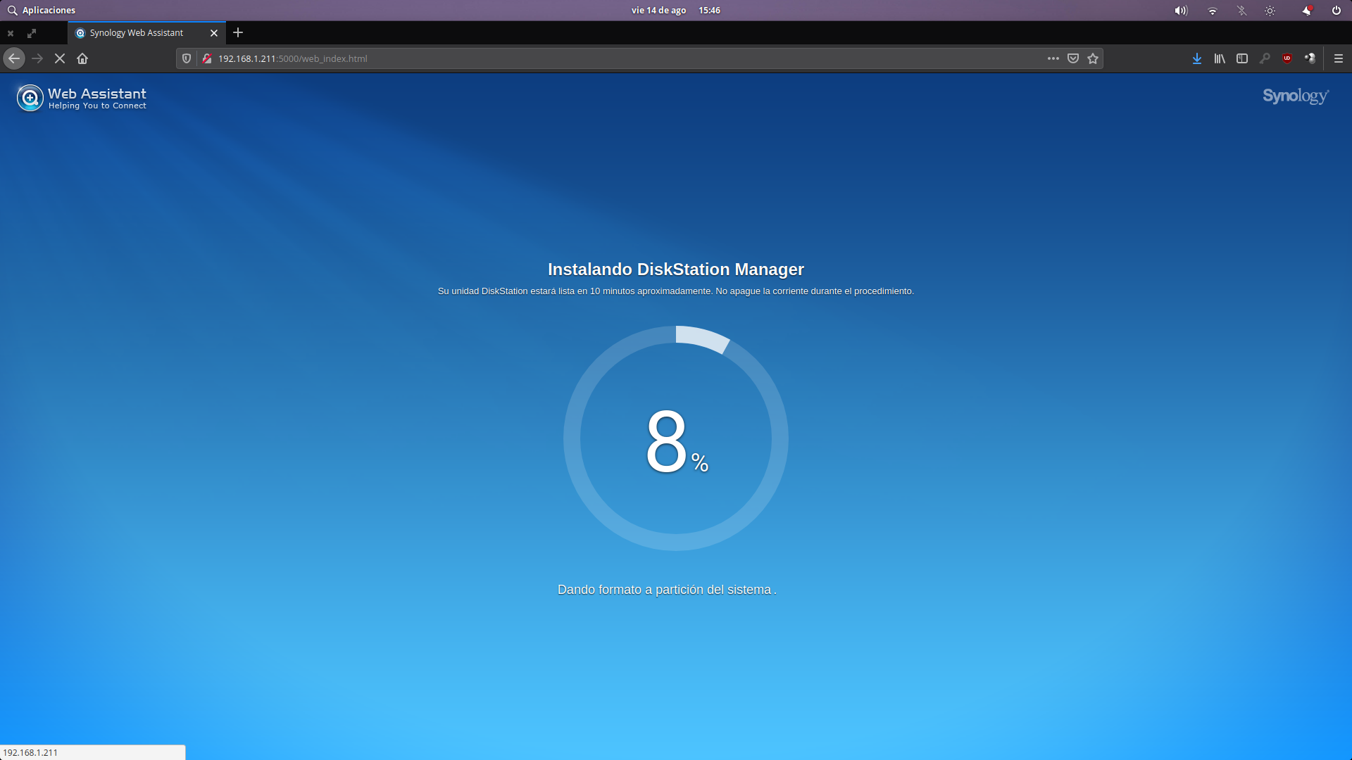 5. Ahora se va a instalar DSM y al finalizar se reiniciará. Debemos esperar hasta que haya finalizado todo el procedimiento, el propio navegador refrescará la web.