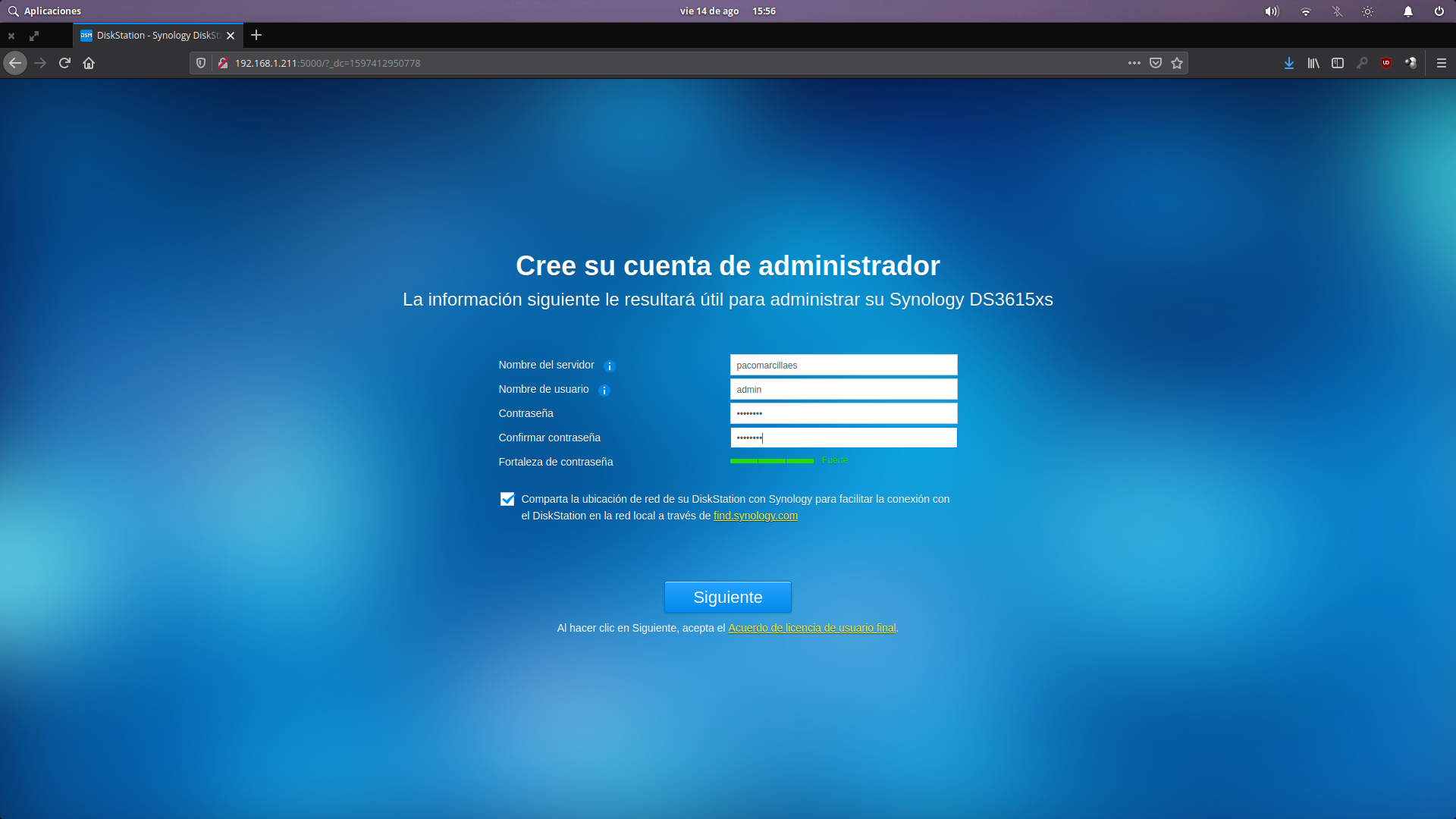 6. Asigna un nombre a tú NAS y un usuario y contraseña para el administrador.