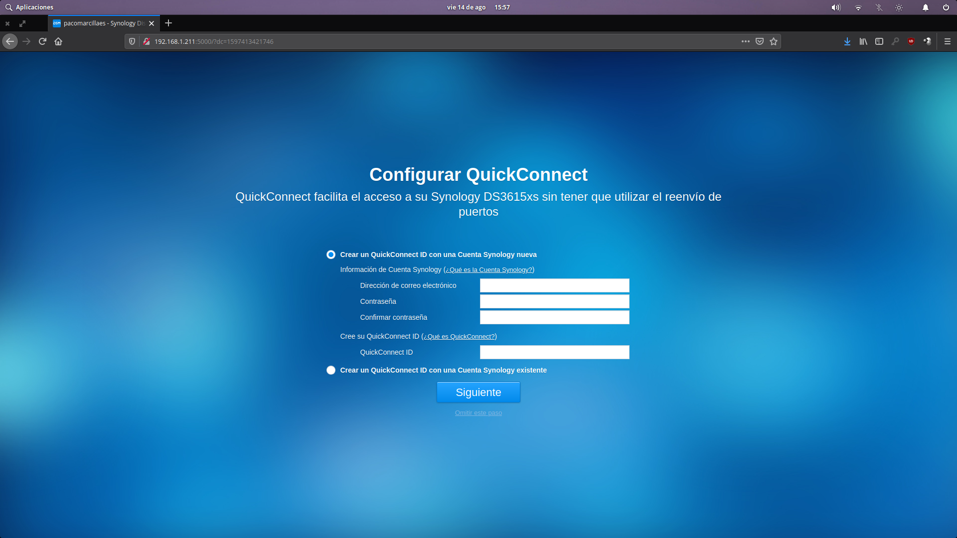 7. El siguiente paso es configurar Quickconnect. Quickconnect es un servicio que ofrece Synology a sus clientes para facilitar el acceso a la NAS desde internet. Este paso puede realizarse después si así lo prefieres.
