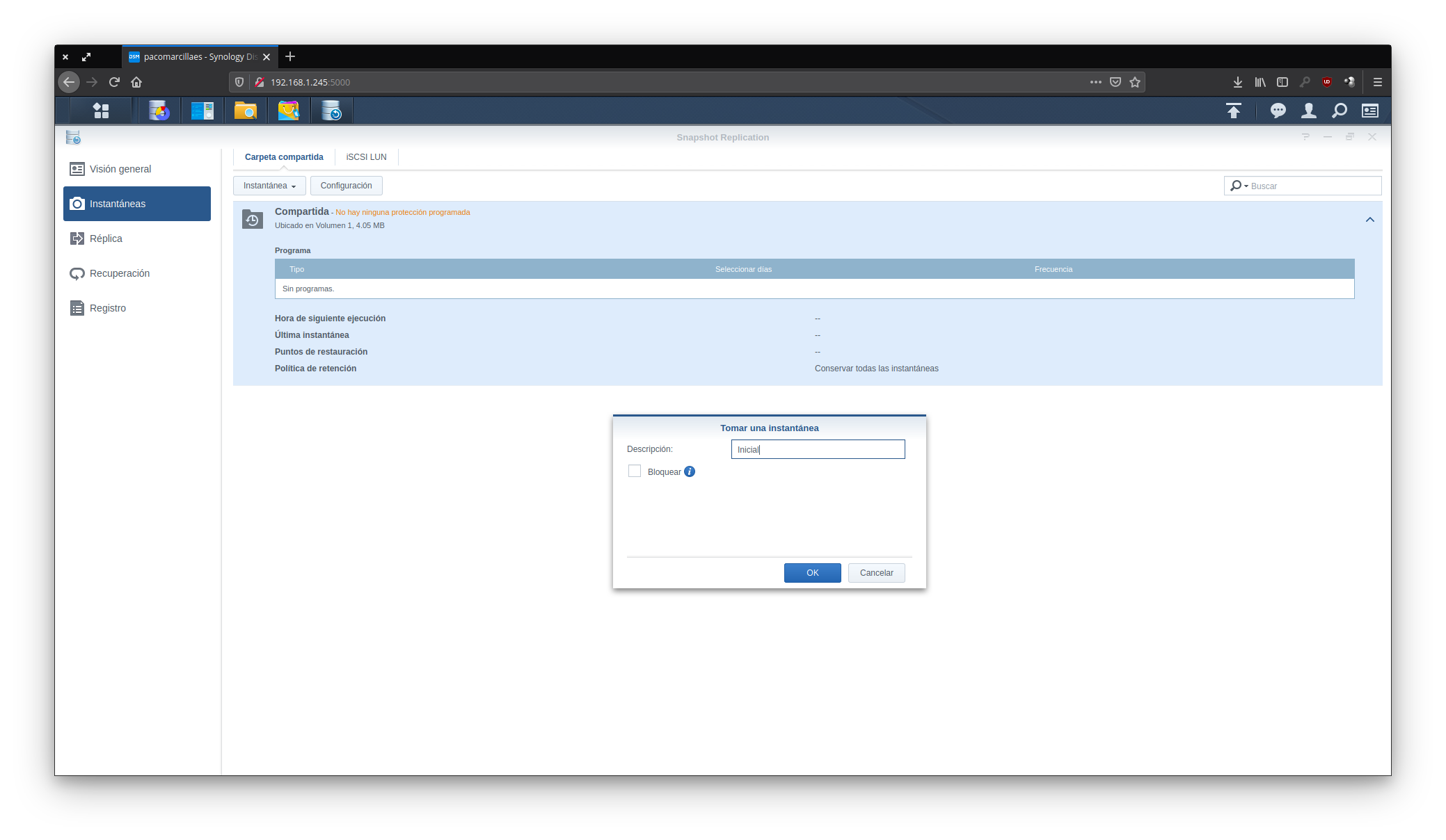 - Pinchamos nuevamente en Instantáneas -> Tomar una instantánea y nos sale un menú para identificar la misma.