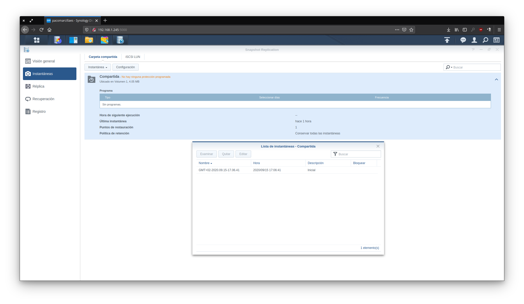 - Ahora si comprobamos nuevamente el listado de instantáneas veremos que aparece la que acabamos de crear.