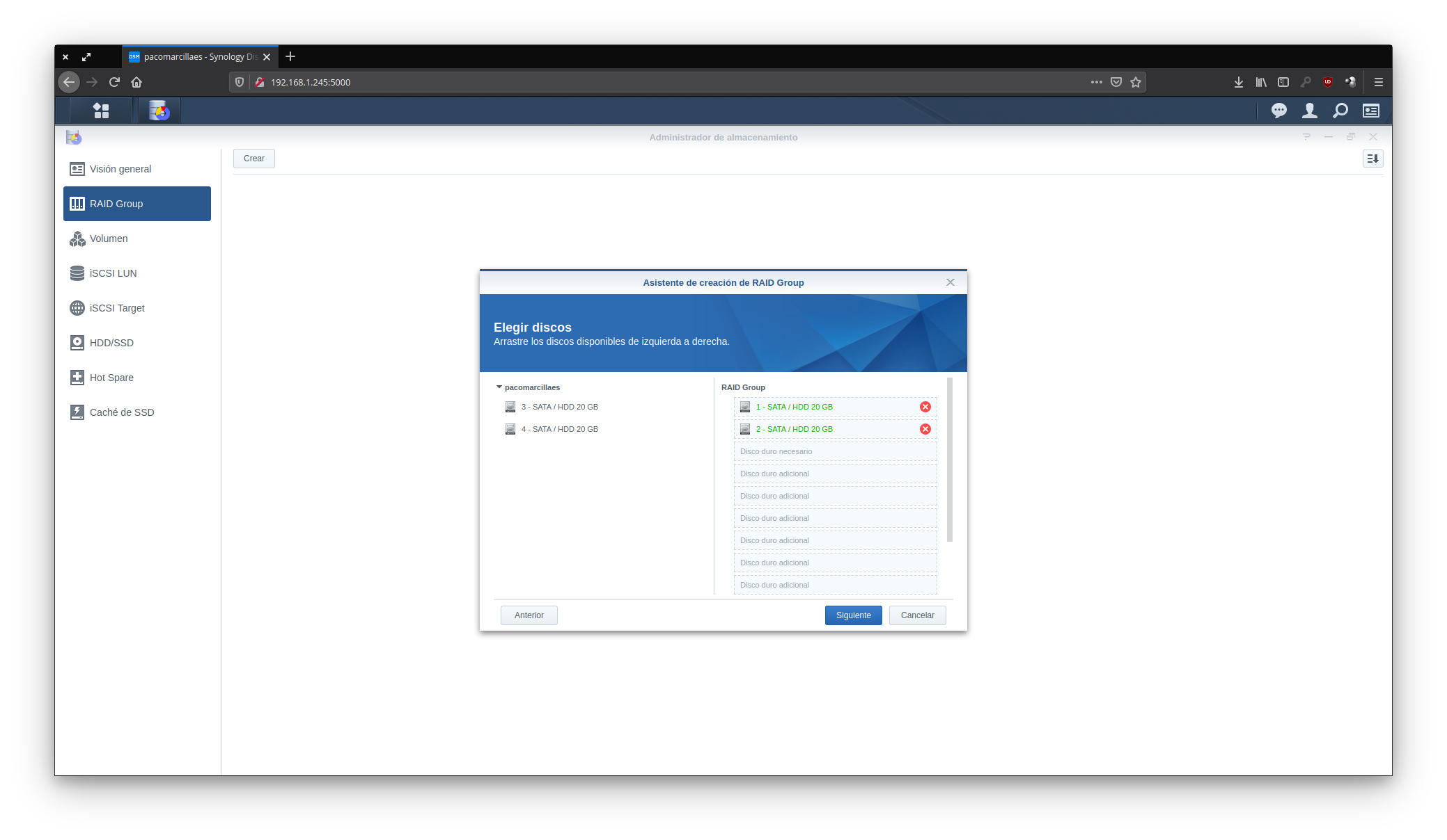 - Seleccionamos los discos que queremos que formen parte del RAID.