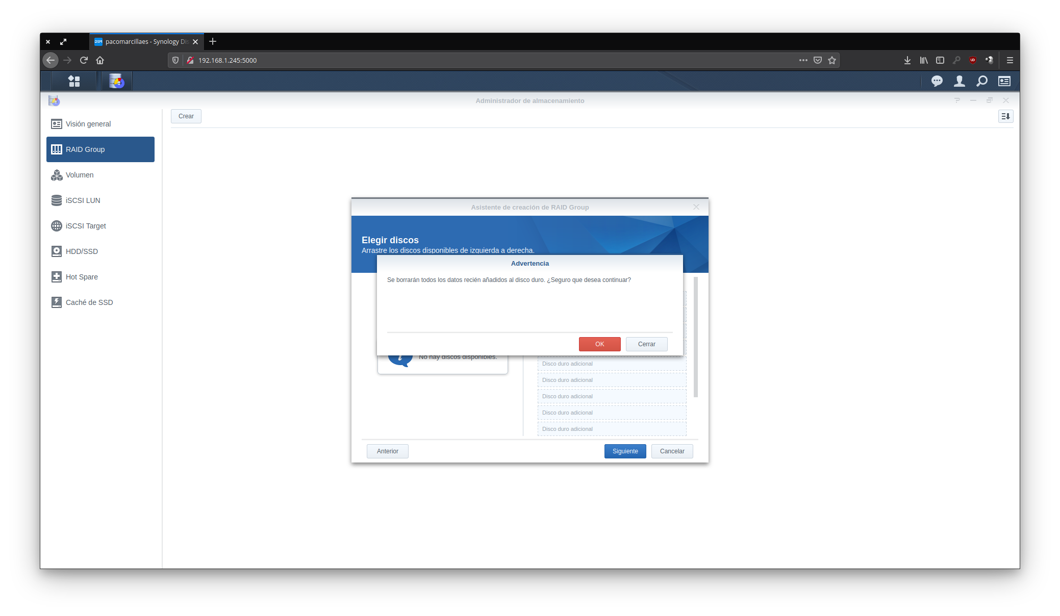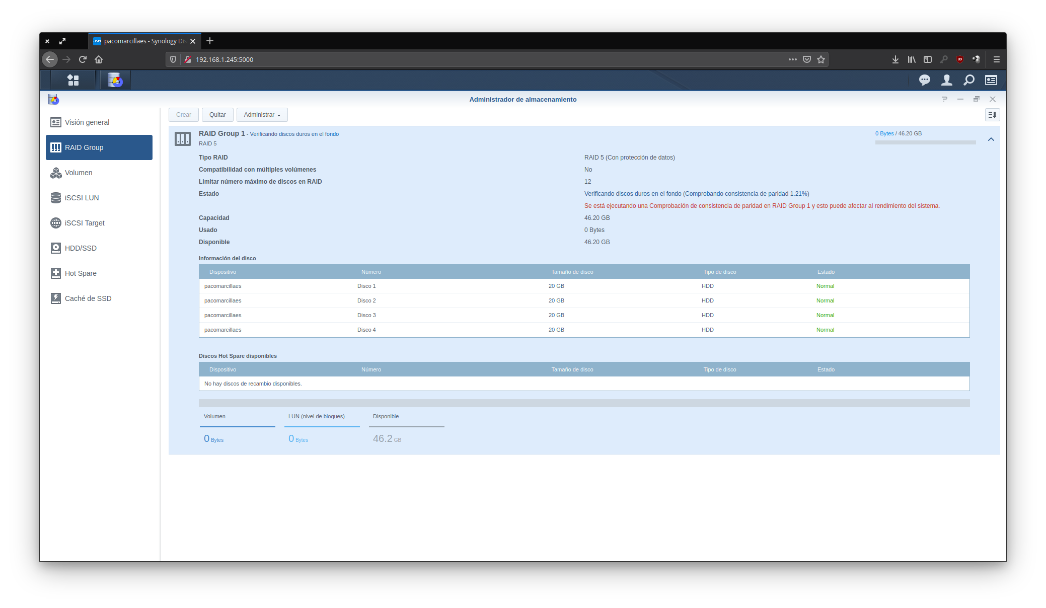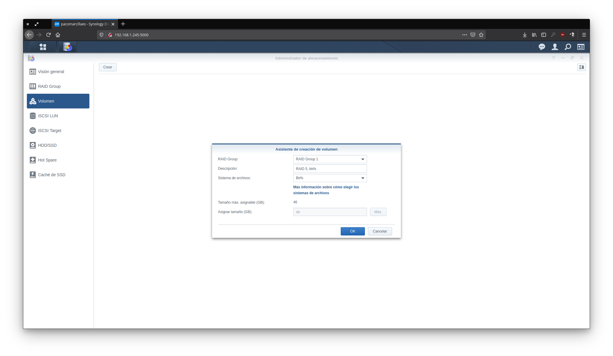 - Lo primero es acceder a nuestra NAS Synology y entrar en el administrador de almacenamiento.