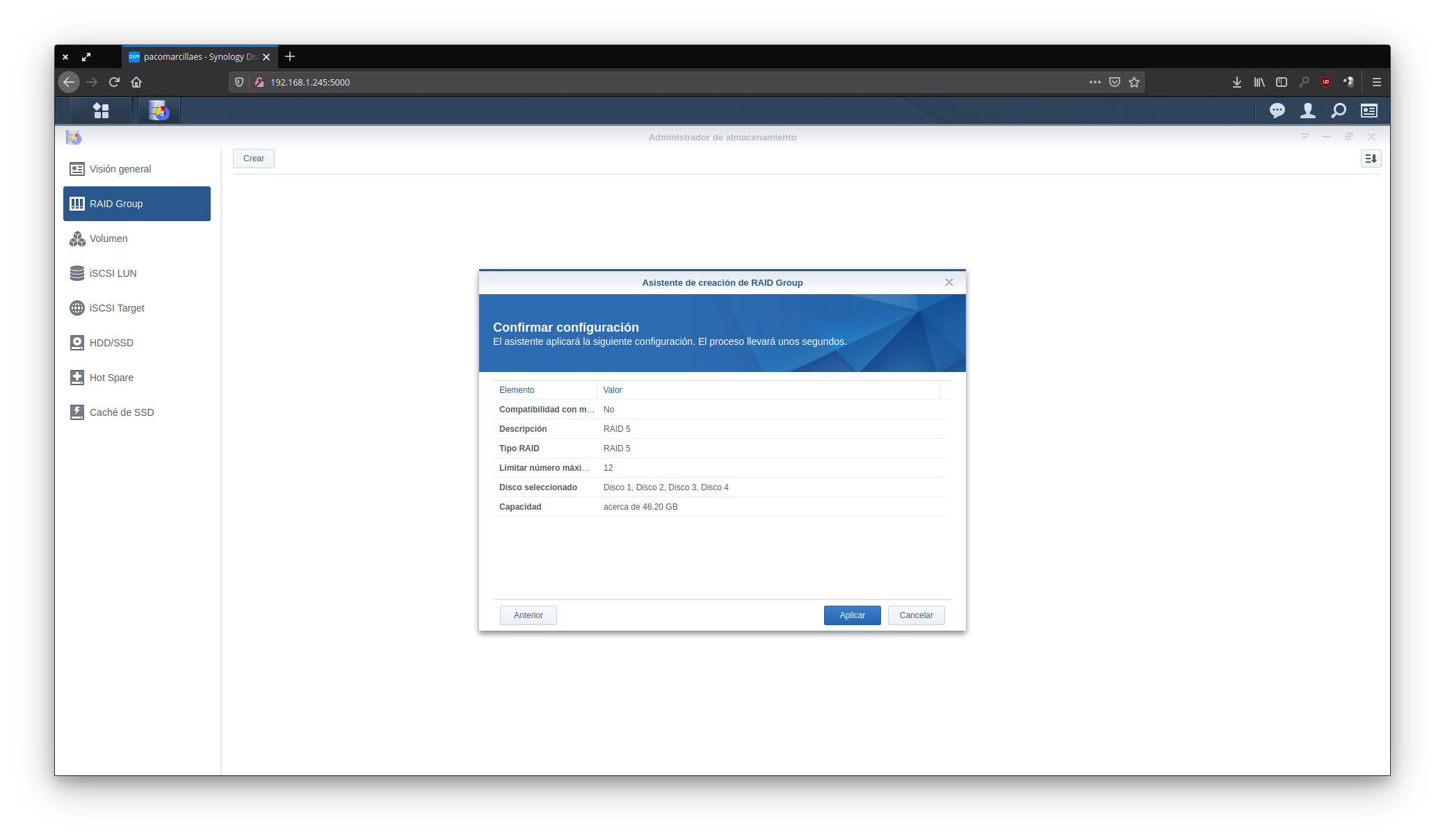 En la anterior entrada veíamos cómo poner una IP fija en nuestra NAS Synology. Esta semana continuamos y vamos profundizar un poco más y vamos a ver cómo configurar el almacenamiento para poder compartirlo en la red. Crearemos un grupo de almacenamiento, un volumen y por último una carpeta compartida. Como bonus, os enseñaré como hacer instantáneas para tener una «foto» de como está nuestra carpeta compartida en un momento dado y así poder salir del paso en caso de un borrado accidental.