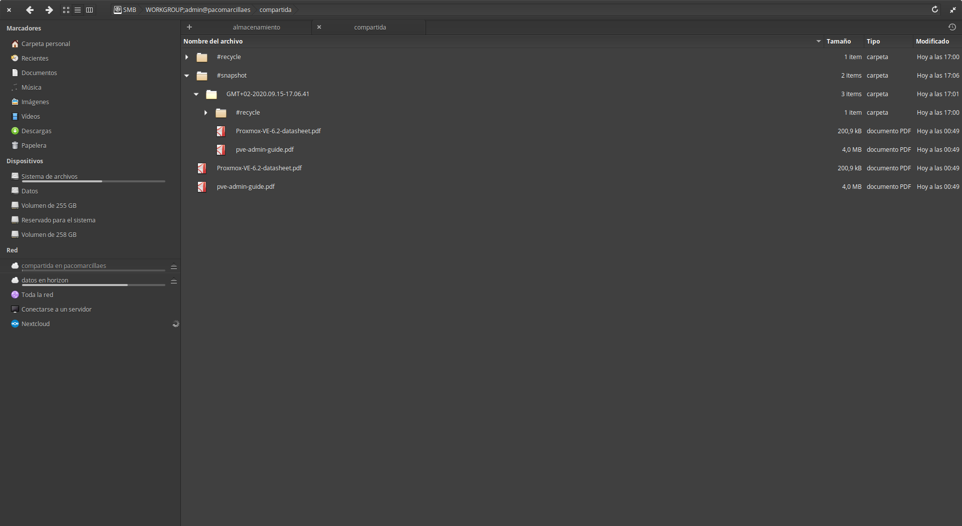 Y ya para terminar este manual, vamos a ver como crear instantáneas del sistema de ficheros y configurarlas para que sean accesibles por los usuarios. De esta forma, los propios usuarios pueden acceder a sus datos en modo sólo lectura y recuperar los ficheros borrados accidentalmente sin generar un ticket al equipo de sistemas.